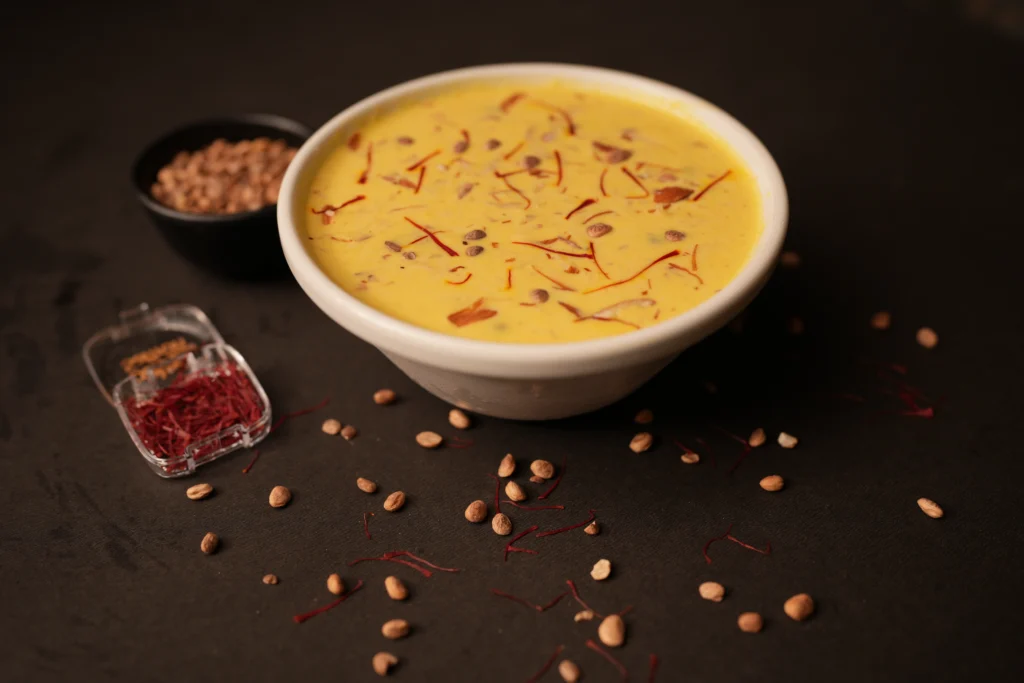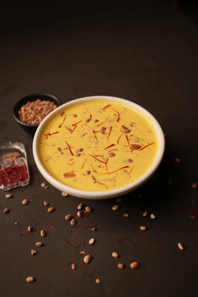 Creamy rice kheer infused with premium saffron, offering a delicate sweetness and royal flavor in every bite.